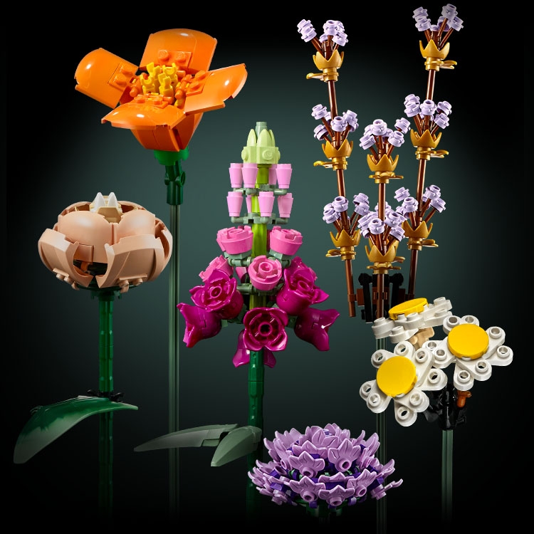 The lego flower bouquet from the new botanical collection is one of the most elegant and classy sets ever produced! Thank you lego for bringing in new ideas. Lego's botanical collection features flowers that don't wilt: This flower bouquet delivers a vibrant display of colors and interesting shapes, inspired by real flowers such as roses, snapdragons, poppies, asters, daisies and grasses. 15 stems with a mix of flower and leaf varieties.